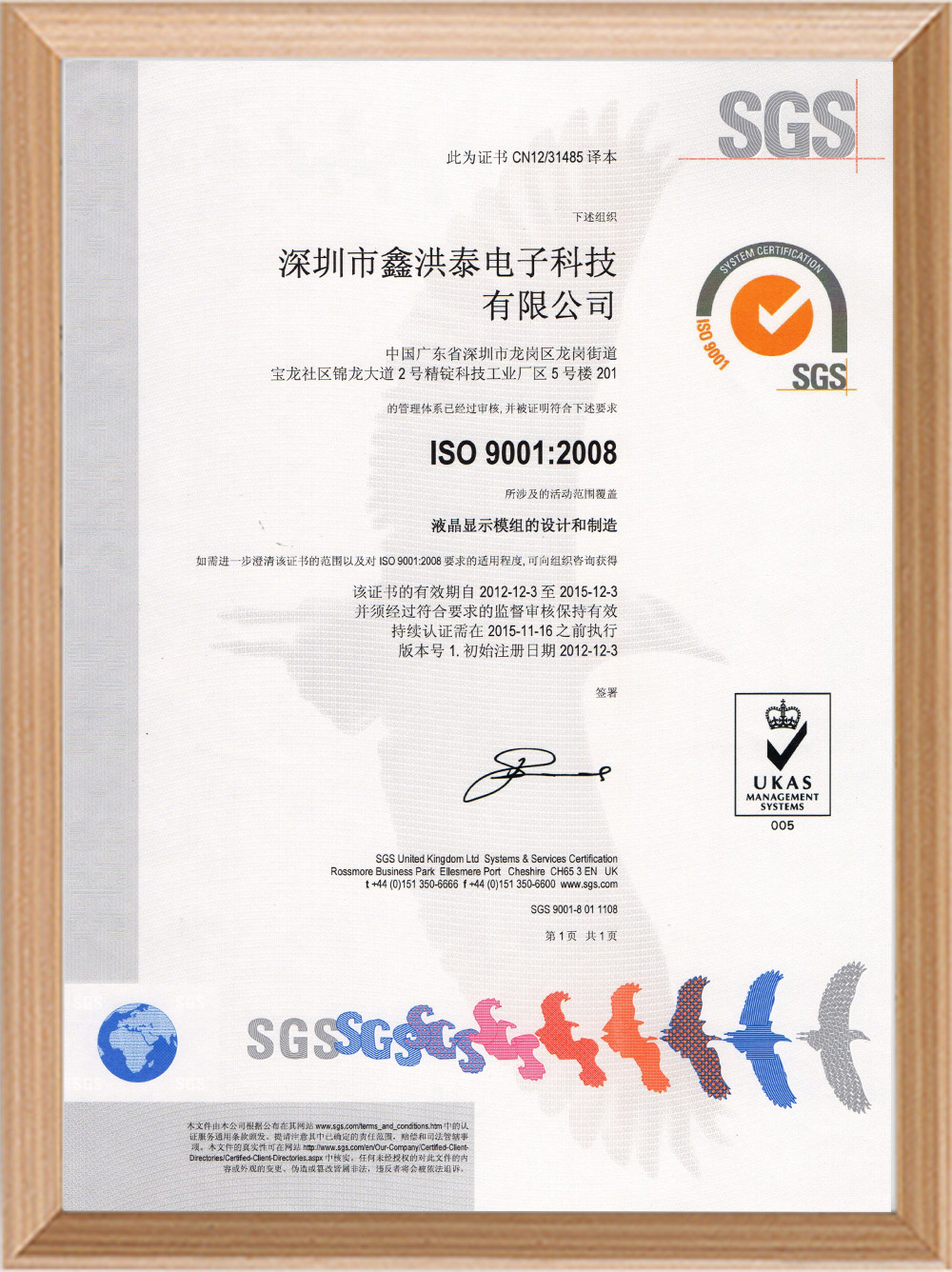 ISO9001:2008 認證證書