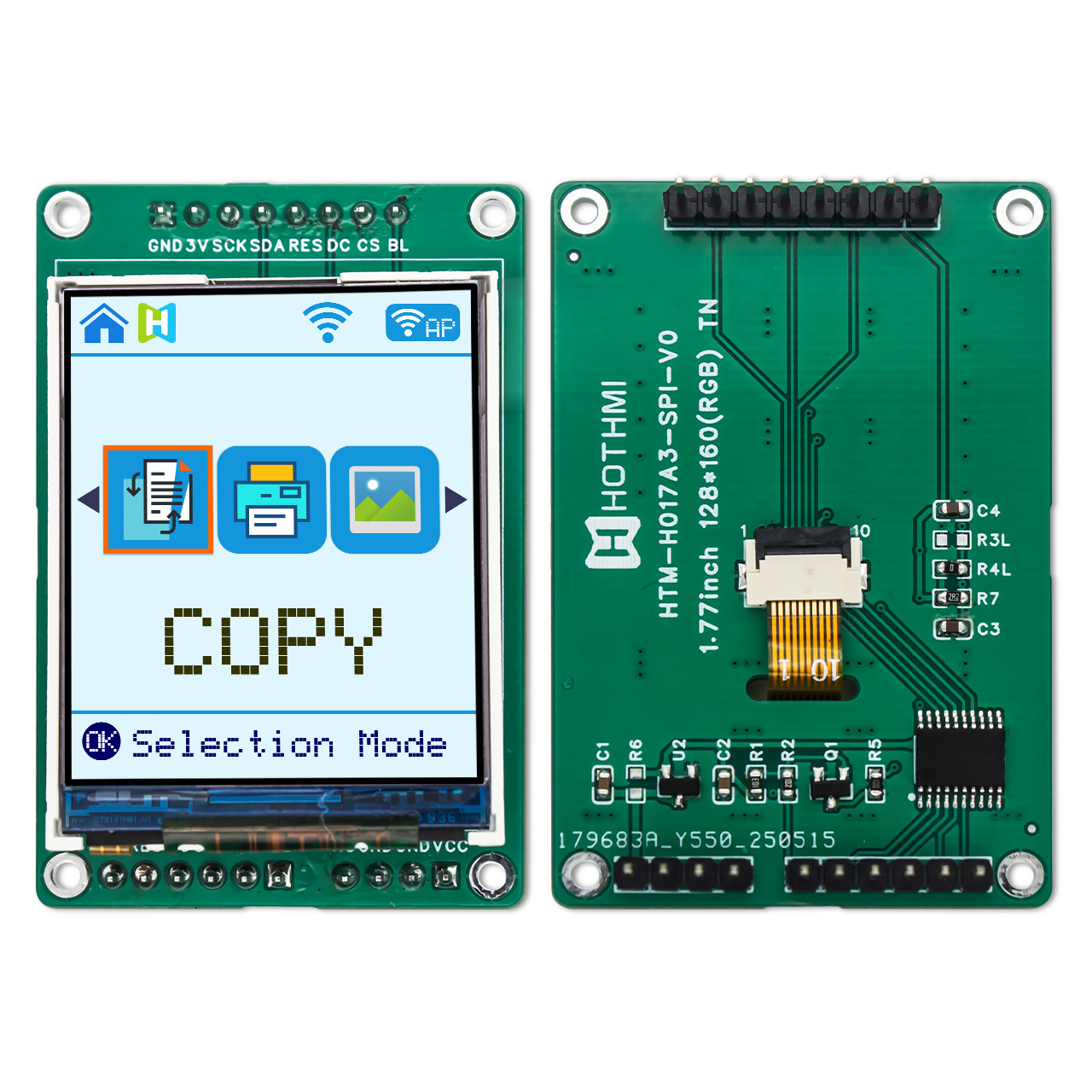 這款1.7 英寸 TFT LCD 顯示模塊,提供 128 (RGB) x 160 像素的分辨率,其默認顯示方向為 12 點鐘方向。模塊核心采用 ST7735S 驅動芯片,并內置了必要的驅動電路。其工作電壓范圍為 2.5V 至 3.3V (VCI),通過標準的 SPI(3線或4線)接口進行通信與控制,該模塊在 -30°C 至 +80°C 的環(huán)境下可正常工作,儲存溫度范圍為 -20°C 至 +70°C。在典型恒流測試條件下,其液晶模組亮度可達 850 cd/m2。超高品質顯示屏加上高亮度設計,使得這款顯示模塊成為陽光下可視的IPS全視角的顯示屏。