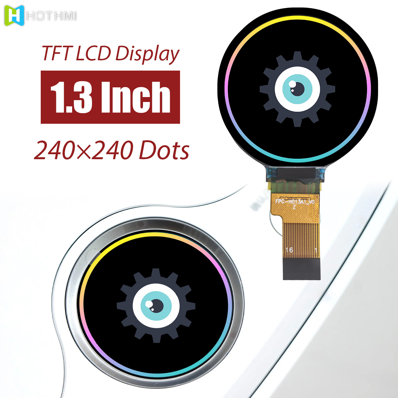 TFT-H013A6QQIGC7N10是一款直徑1.3寸圓形IPS TFT-LCD顯示器,分辨率240x240像素。此圓形TFT顯示器加上IPS面板,內(nèi)建GC9A01驅(qū)動IC,透過SPI接口進(jìn)行通信。