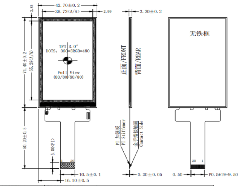 • 型號: 3.0寸TFT|分辨率360*480| MIPI接口|全視角IPS|TFT-H030A5NHIST4N20
