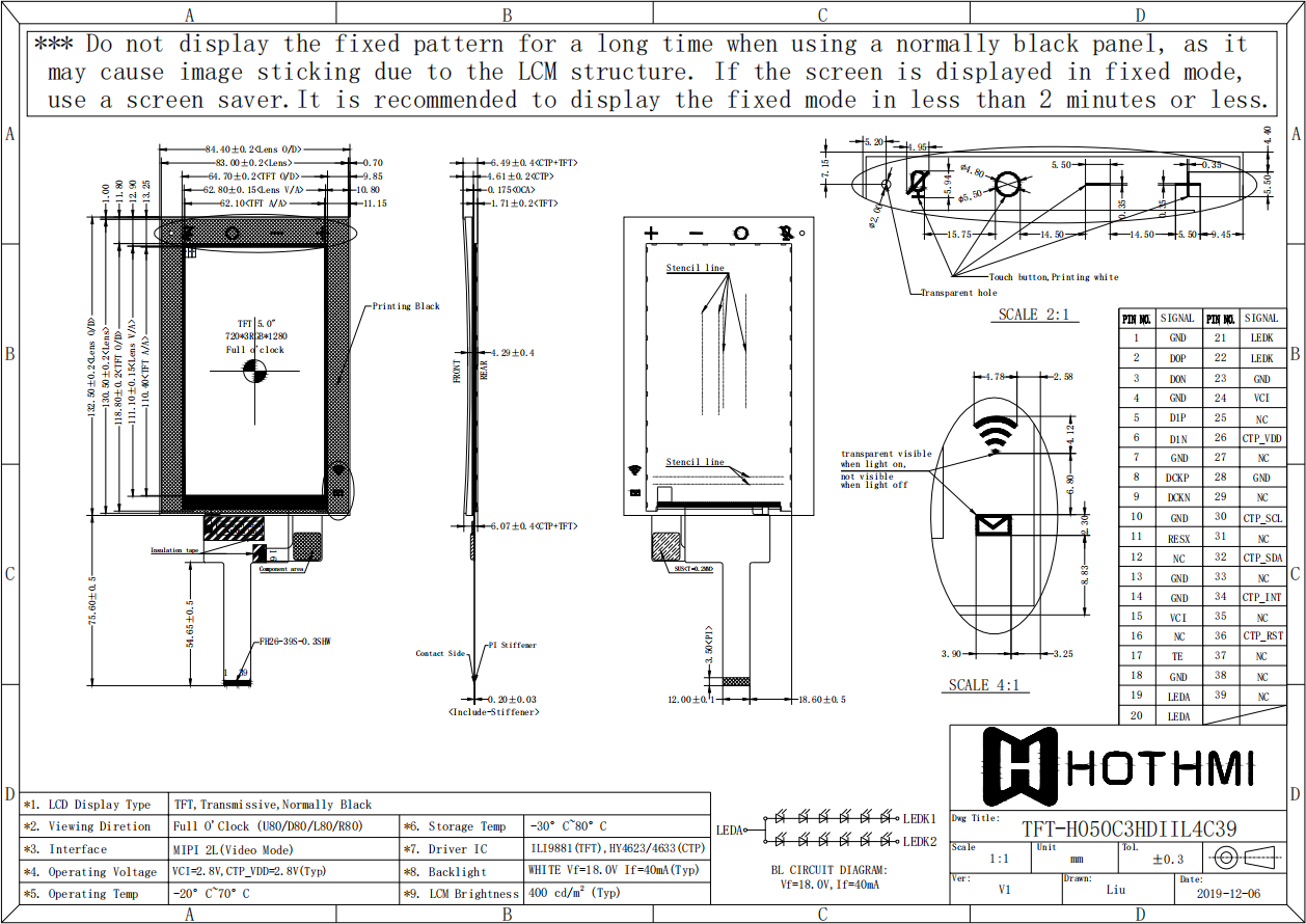 5.0寸TFT彩屏|高清720*1280分辨率|全視角IPS工藝|MIPI接口|TFT-H050C3HDIIL4C39image.png