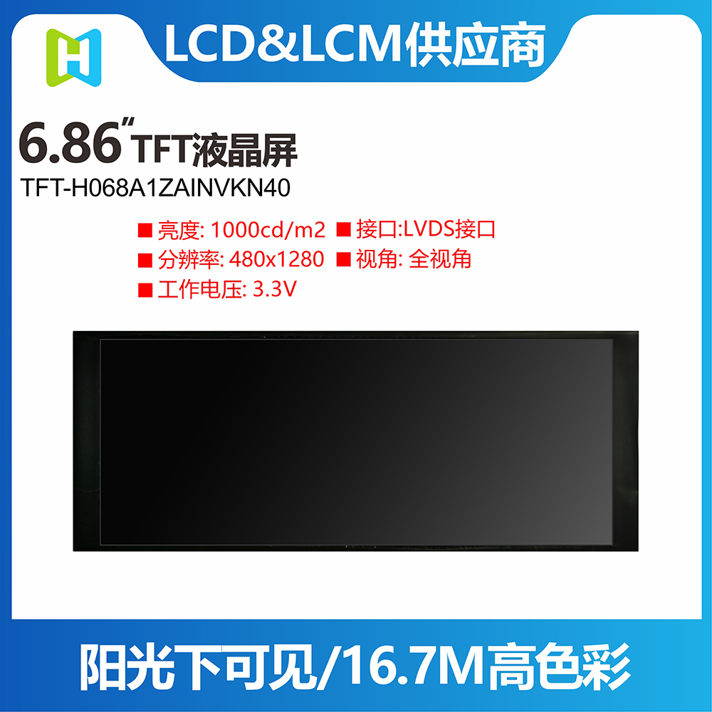 • 型號(hào): 6.86寸TFT液晶屏/長(zhǎng)條形/480*1280分辨率/IPS/LVDS 4L 接口/TFT-H068A1ZAINVKN40