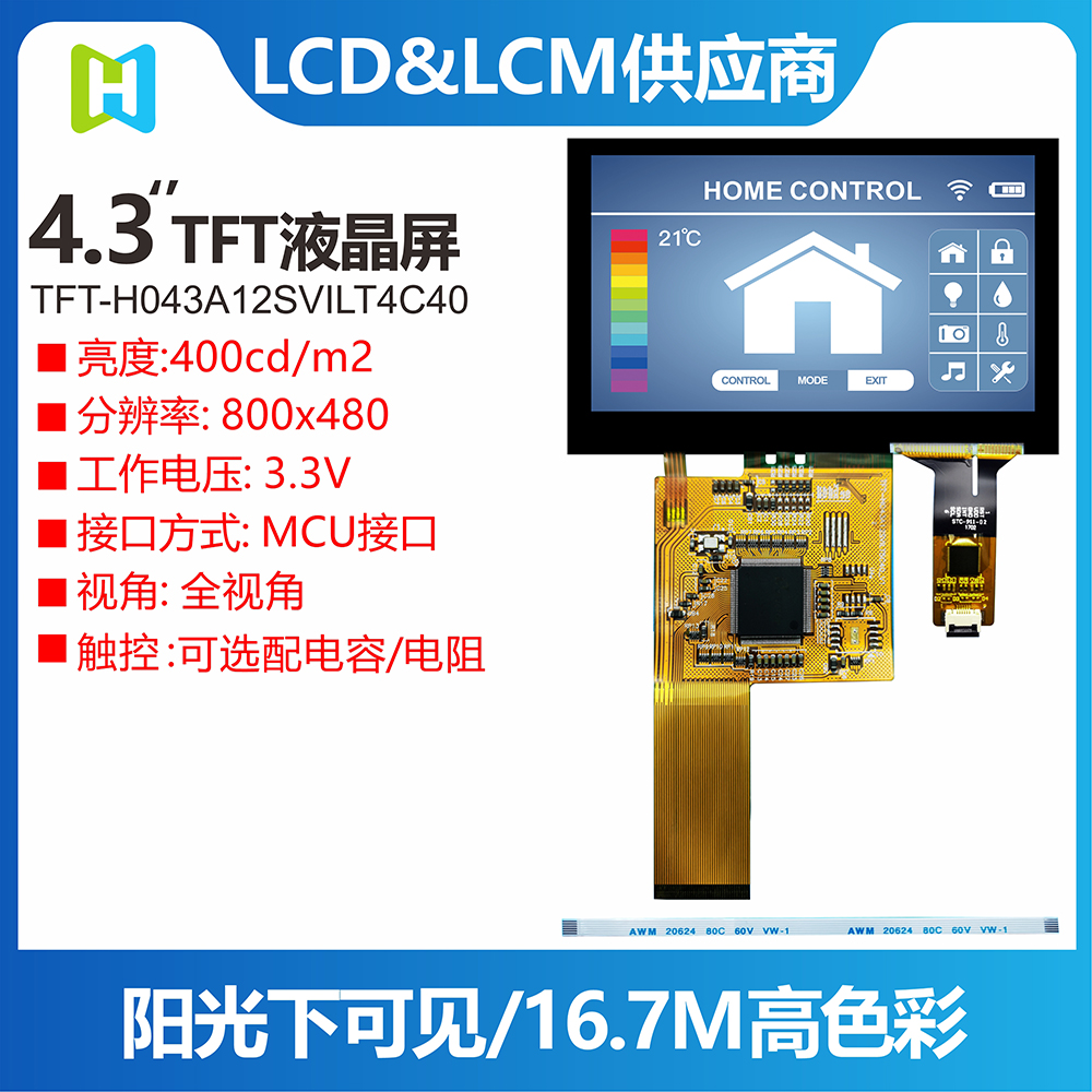TFT-H043A12SVILT4C40 4.3寸TFT-LCD顯示器顯示全方位視角,此型號外觀尺寸為 105.42*67.07mm, 有效尺寸為95.040*53.856mm,4.3寸A12的工作溫度為-20℃~+70℃而儲存溫度則為-30℃~+80℃。此款4.3寸顯示屏帶有電容式觸控屏幕。產(chǎn)品主要用于工業(yè)級設(shè)備上包含了工業(yè)儀器儀表設(shè)備醫(yī)療儀器、GPS導(dǎo)航、咖啡機(jī)、洗衣機(jī)等白色家電、能源系統(tǒng)、充電樁、POS系統(tǒng)、自動販賣機(jī)、停車場收費(fèi)機(jī)等.