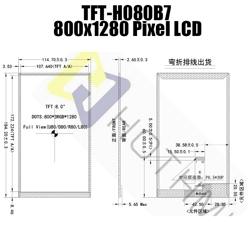 隆重推出 TFT-H080B7HDINV6N30,這是一款 8.0 英寸 IPS LCD 顯示屏,具有 800x1280 像素的高分辨率,可提供具有鮮艷色彩和清晰細(xì)節(jié)的驚人視覺效果。 憑借其先進(jìn)的技術(shù),該顯示器還設(shè)計(jì)為陽光下可讀,即使在明亮的戶外環(huán)境中也能確保最佳可見度。