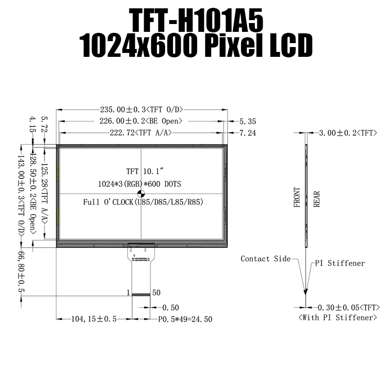正在尋找適合您最新項(xiàng)目的高品質(zhì) LCD 顯示器? TFT-H101A5WSIFT3N50 是您的不二之選 - 一款 10.1 英寸 IPS LCD 顯示屏,具有驚人的 1024x600 分辨率。 該面板由頂級(jí) TFT LCD 顯示器制造商設(shè)計(jì)和制造,可提供出色的圖像質(zhì)量和色彩還原,使其成為廣泛應(yīng)用的完美選擇。