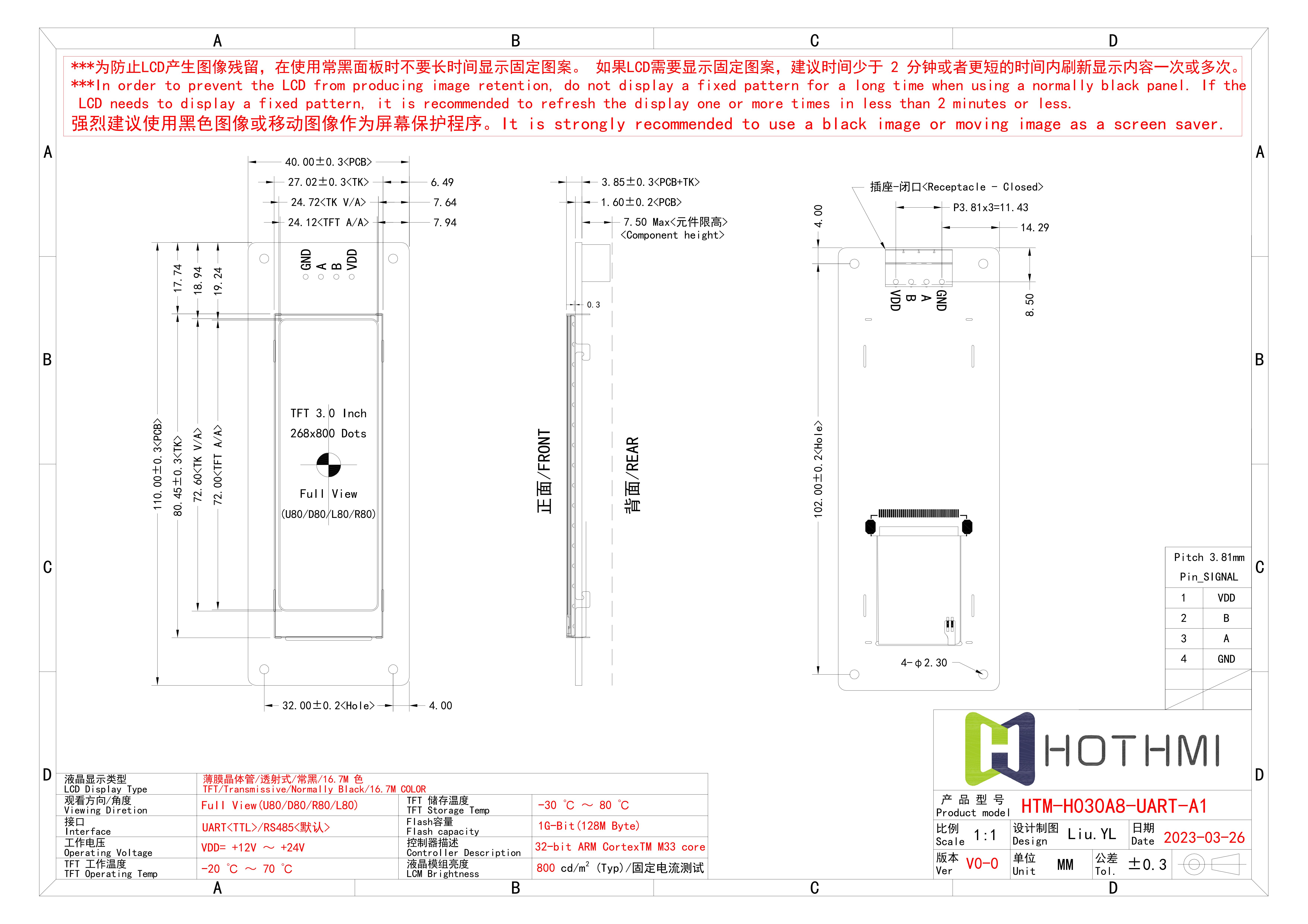 產(chǎn)品名稱:HTM030A8-UART系列智能串口屏