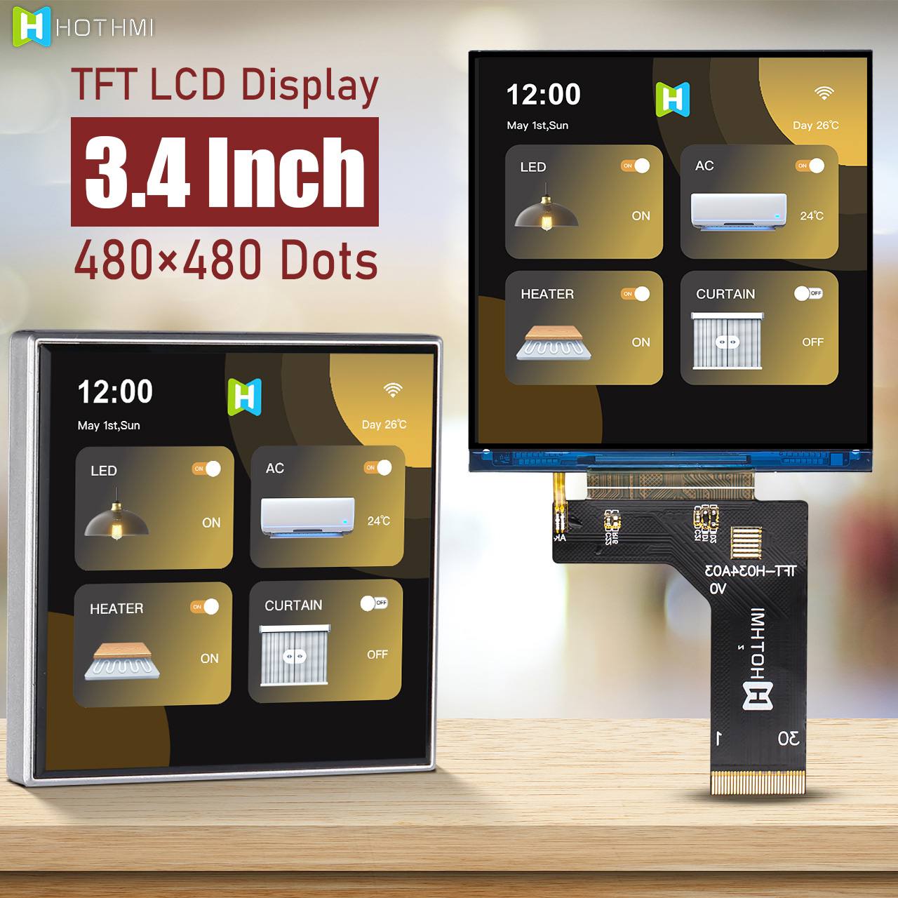 TFT-H034A03ZHINV4N30 | 3.4" IPS LCD | 480x480px 分辨率屏幕 | MIPI 接口 | 可選配電阻/電容屏