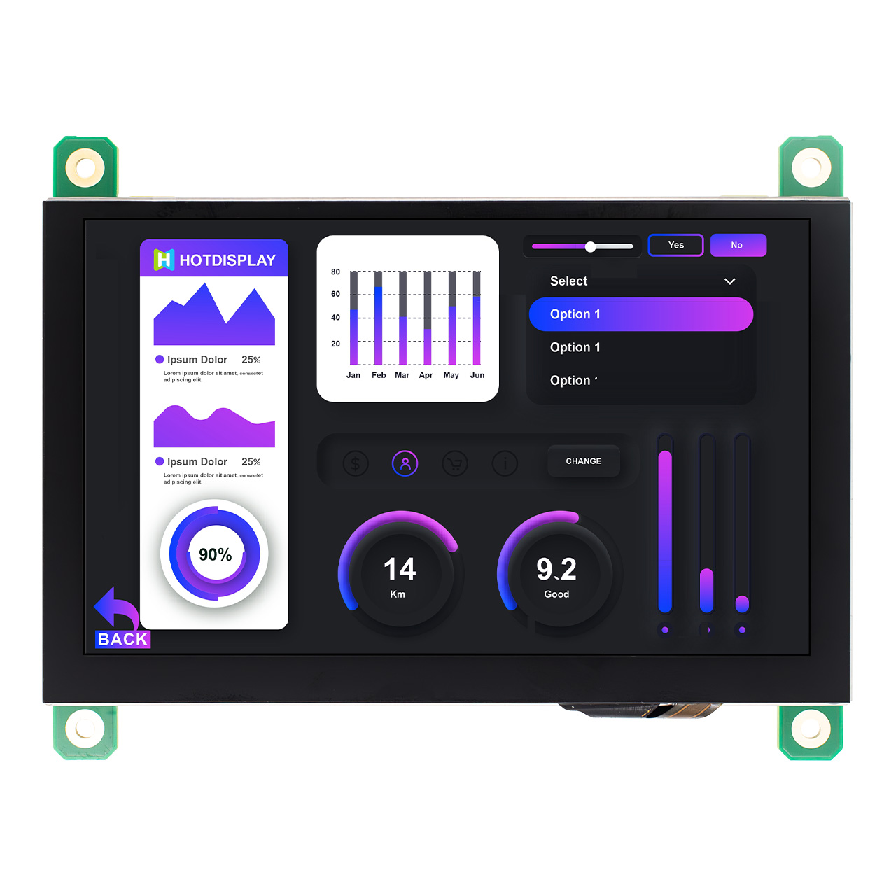| 4.3寸 UART 電容式觸摸屏 TFT LCD 800x480 顯示屏帶 LCD 控制板智能屏 HTM-H043A10-UART-CTP | TFT帶板模塊 | 800x480 |