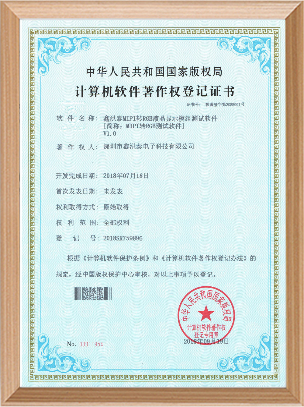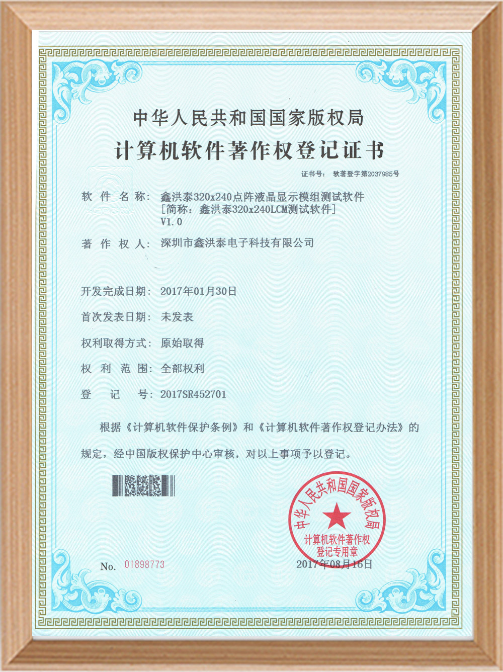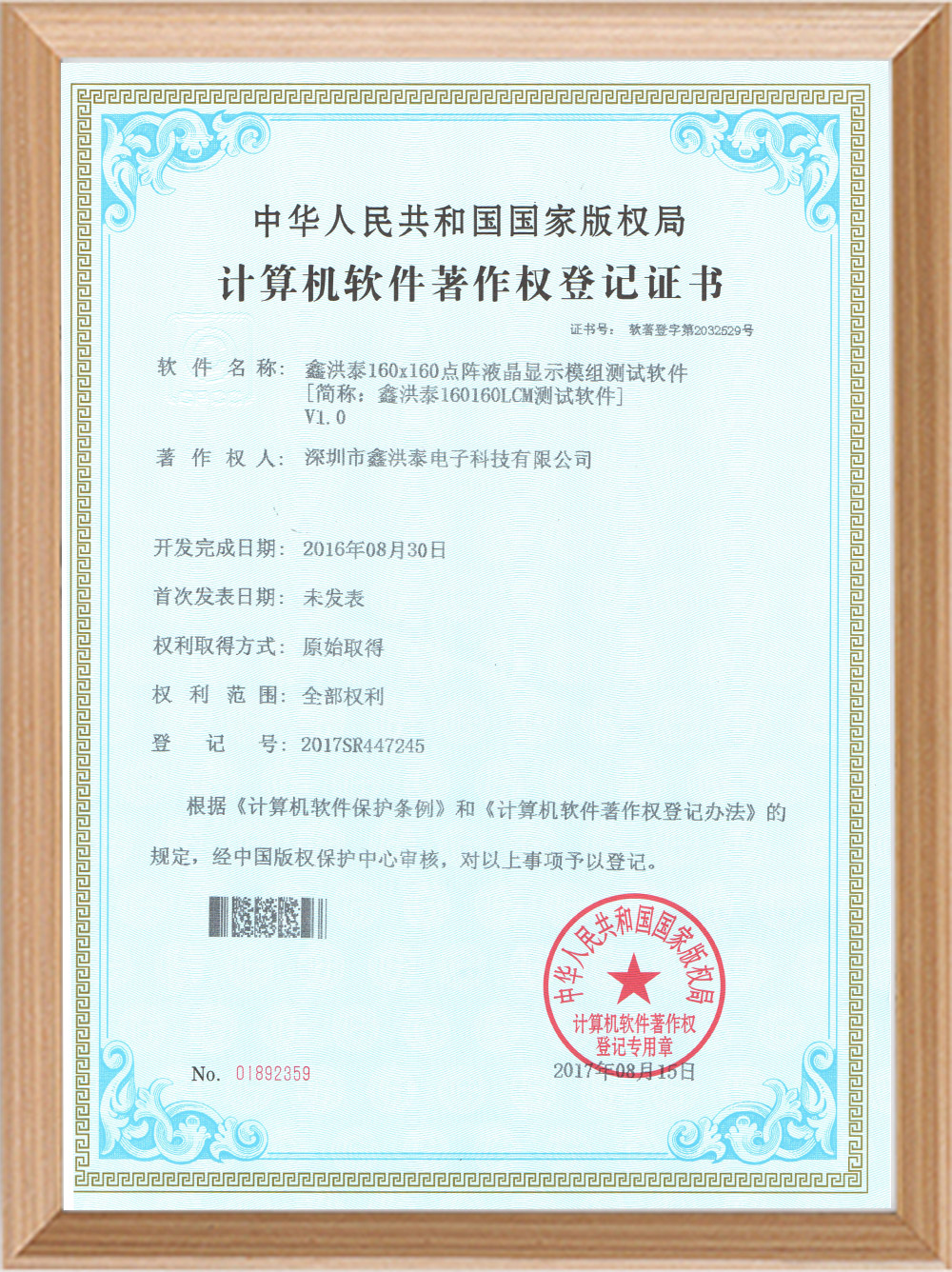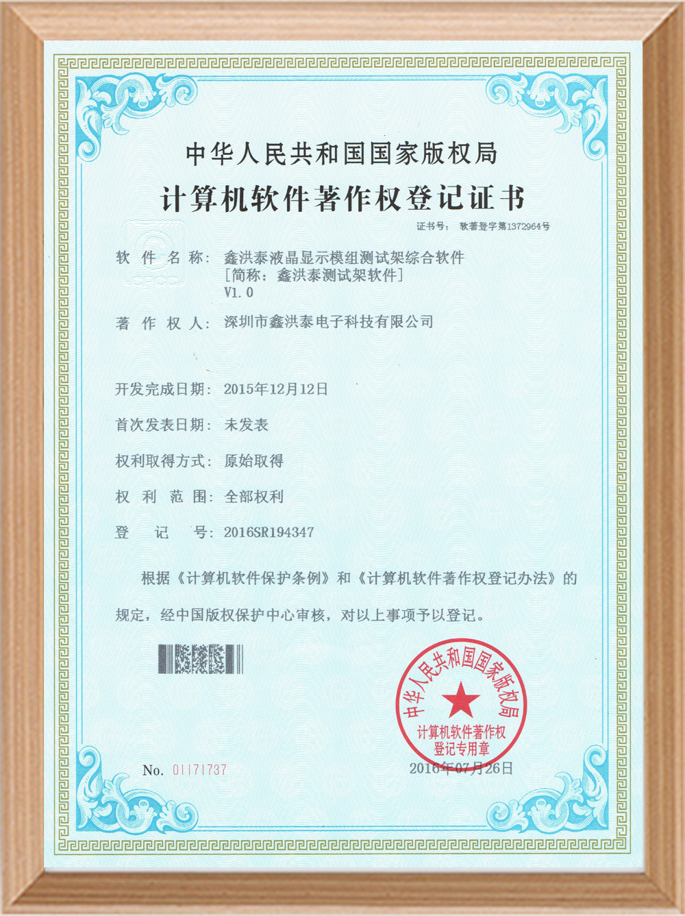 Software copyright certificate