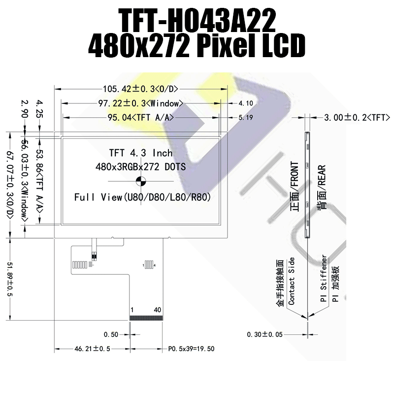 Outline Dimension | 105.46(H) * 67.11(V) * 3.00(D)<TFT> | mm | ||