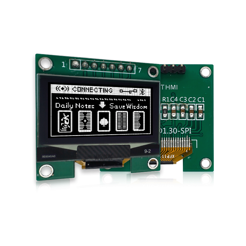 This 1.30-inch white monochrome graphic OLED display features a built-in SSD1306 controller and requires a power supply of 3.3 V. It offers great viewing angles and crisp, vibrant graphics. The display module can be interfaced using either serial or parallel communication. It operates in a wide temperature range of -40 to 85 degrees Celsius, making it ideal for use in a variety of environments, including harsh ones. The display is compatible with Arduino and other popular development boards. It also comes with a touchscreen and EMI-shielded FPC.and is RoHS compliant.
