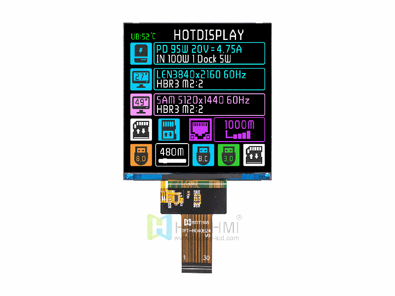 | 720X720 Resolution 4.0" Full Color Square TFT LCD/ST7703 Controller TFT-H040B24ZKIST5N30 | TFT square | 720x720 |