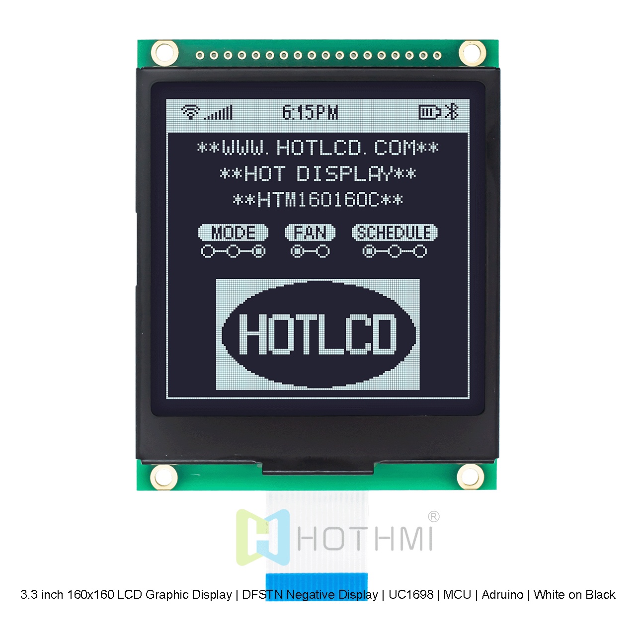 3.3 英寸 160x160 LCD 圖形顯示屏在黑色背景上顯示白色像素。這款全透式 LCD 顯示屏經(jīng)過精心設(shè)計(jì),在明亮環(huán)境中,通過偏光片的反射性,將圖像反射給觀賞者,在較暗的環(huán)境中,LCD 內(nèi)置強(qiáng)背光,可提供高對比度并向觀看者顯示清晰的圖形。這種先進(jìn)的顯示技術(shù)可確保顯示屏始終易于閱讀,無論照明條件如何。