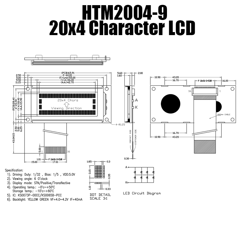 • 型號(hào): 20x4 字符液晶屏/HTM2004-9