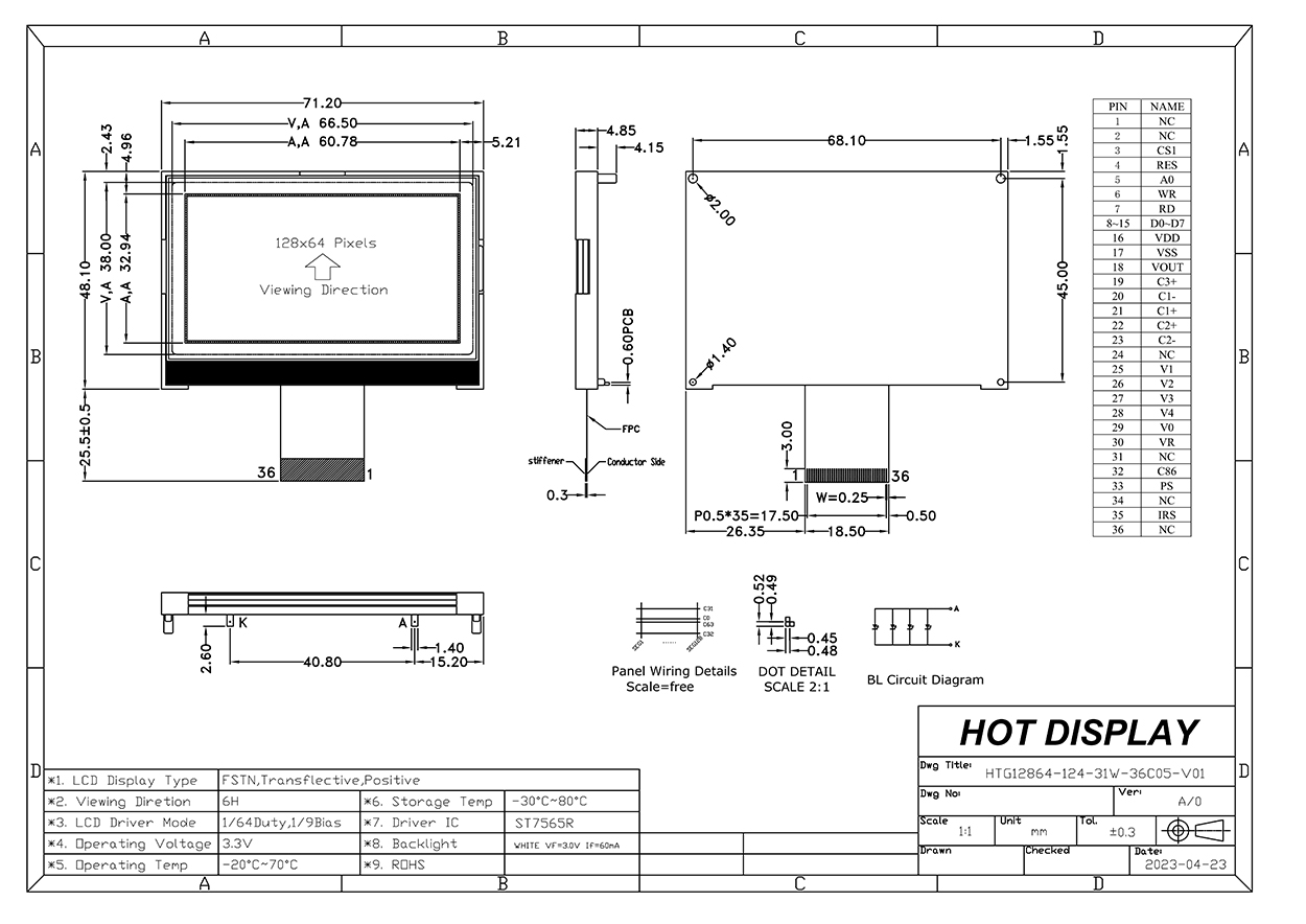 HTG12864-124 COG液晶顯示模塊是一款高品質(zhì)的單色圖形顯示器,提供128x64點(diǎn)的精細(xì)顯示效果。其采用透反式液晶技術(shù),使暗像素在白色背景上清晰可見,為您的項(xiàng)目帶來卓越的視覺體驗(yàn)。