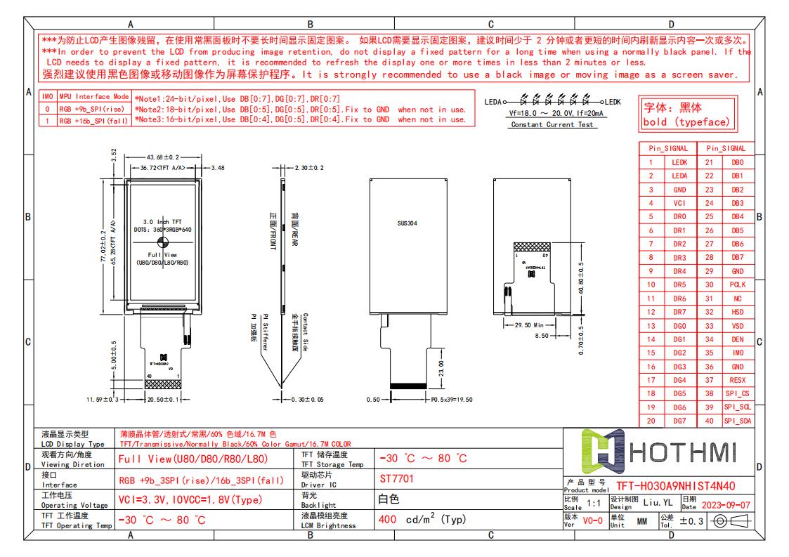 這款TFT-H030A9NHIST4N40是一款高質(zhì)量帶有觸摸功能的3.0英寸IPS TFT液晶顯示屏,專為手持設備而設計。它采用ST7701 Portrait TFT顯示面板,具有360x640高清分辨率,可提供清晰的圖像和生動的顏色。這個顯示屏的廣溫性能范圍為-30℃至80℃,適用于各種工業(yè)計算機和設備。