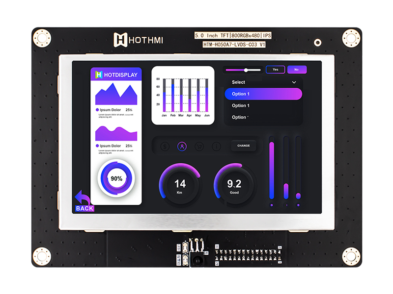 | 5寸 800x480 IPS 電阻式 陽光下可讀 TFT 液晶顯示器寬溫/HTM-H050A7-LVDS-USBRTP | TFT帶板模塊 | 800x480 |