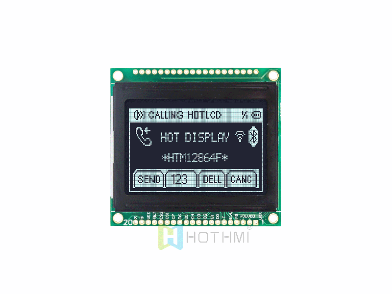 | 2.0英寸圖形點(diǎn)陣模塊/128x64分辨率/黑底白字/KS108或者AIP31108控制芯片/SPI HTM12864F-41W-A5P | 圖形液晶模組 | 128x64 |