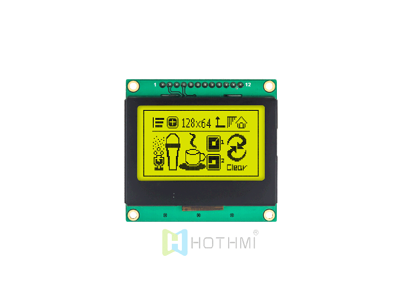 | 2 英寸128x64 黃綠圖形 LCD | 128 x 64 圖形 LCD | STN 正極 | SPI 接口 | 3.3V HTM12864-117-11Y-A3P | 圖形液晶模組 | 128x64 |