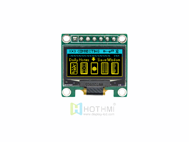 0.96英寸128x64 OLED模組/SPI接口雙色圖形OLED模組/4針連接器/SSD1315控制器 HTM-OLED0.96-SPI-03A-B OLED 模組 128x64 26.0x26.0x2.8 22.74x12.18 0.96 90cd/m2 4 pin SPI 防靜電ESD 8KV -40~85℃ +3.3 V SSD1315